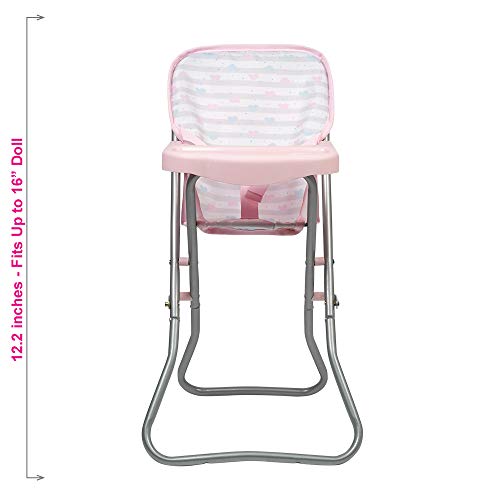 Adora Baby Doll Accessories Pink High Chair, Can Fit Up to 16 inch Dolls, 20.5 inches in Height, Baby Pink and Grey Print