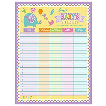 Amscan 380064 Baby Shower Statistics Sheet, 40"x30", Multicolor
