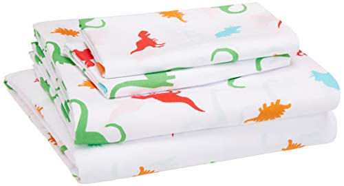 AmazonBasics Easy Care Super Soft Microfiber Kid's Bed-in-a-Bag Bedding Set - Full / Queen, Multi-Color Dinosaurs