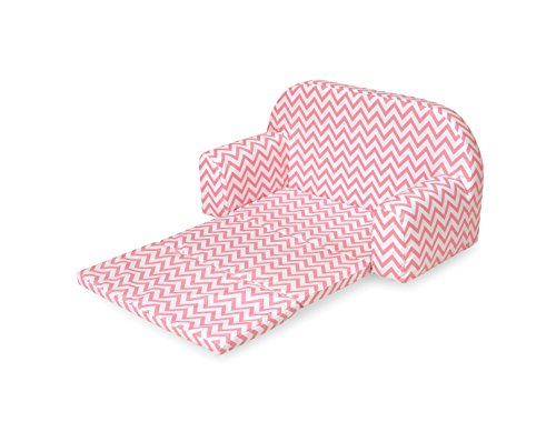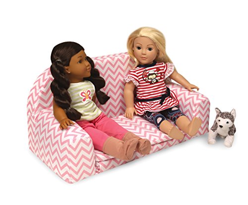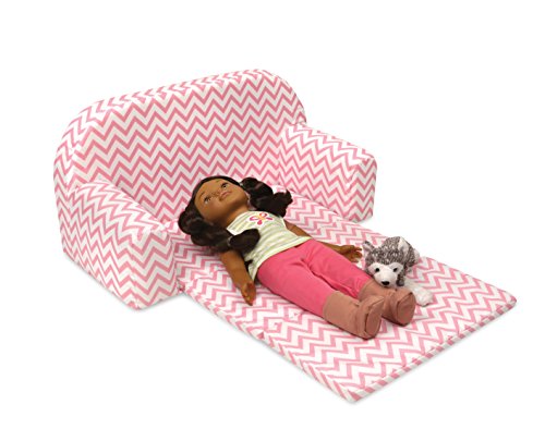 Badger Basket Chevron Upholstered Doll Sofa with Foldout Bed (fits American Girl Dolls), Pink/White