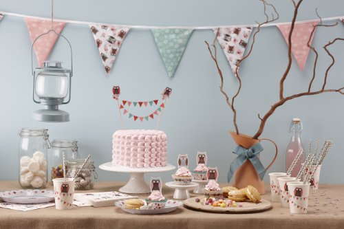 Ginger Ray PO-407 Patchwork Owl Cake Bunting Decoration Party Topper, Mixed, 1