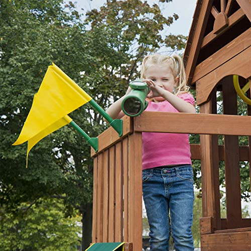 Swing-N-Slide PB 8331 Playful Palace Swing Set with Slide, Swings, Wood Roof, Picnic Table & Climbing Wall, Wood