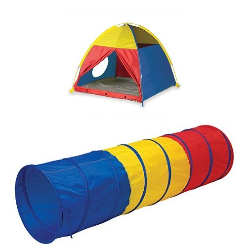 Pacific Play Tents Tri-Color Dome Tent and Tunnel, 2 Piece Bundle, 48” x 48” x 42” Tent and 6 Foot Tunnel