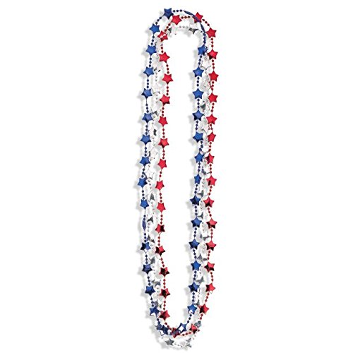 Amscan 318570 Red White and Blue Fourth of July Metallic Star Bead Necklaces Accessory Party Supplies, 33", Multi Color